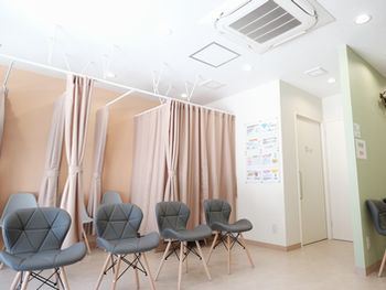 受付後に問診票のご記入がお済みになりましたらこちらでお待ちください。また、発熱の方などに配慮した隔離スペースも設けております。