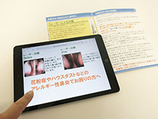待合室など院内の各所に設置したモニターで、設備のご紹介や耳鼻咽喉科領域の病気に関する説明を行っております。