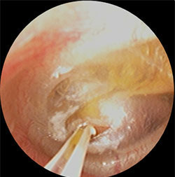 耳だれが断続的にみられますので、鼓膜に生じた穴はいつまでもふさがりません。